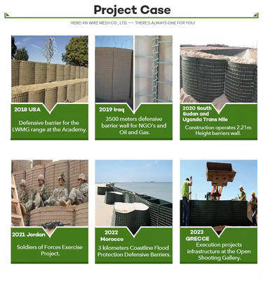 Barreiras defensivas é um Gabion soldado moderno usado principalmente para controle de inundações e fortificações defensivas.e utilizado como um dique temporário ou semi-permanente ou parede de explosão contra parede de explosõesTem sido amplamente utilizado em barreiras de proteção defensiva, muros de proteção contra inundações, muros de retenção de perímetro, etc.