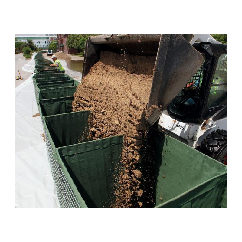 Uma unidade recuperável revestida de geotextil para utilização geral como barreira de revestimento de terra.As unidades são adequadas para enchimento com terra, areia, cascalho, rocha esmagada e outros materiais granulares.A unidade tem uma vasta gama de utilizações,incluindo a construção de muros e barreiras de protecção.